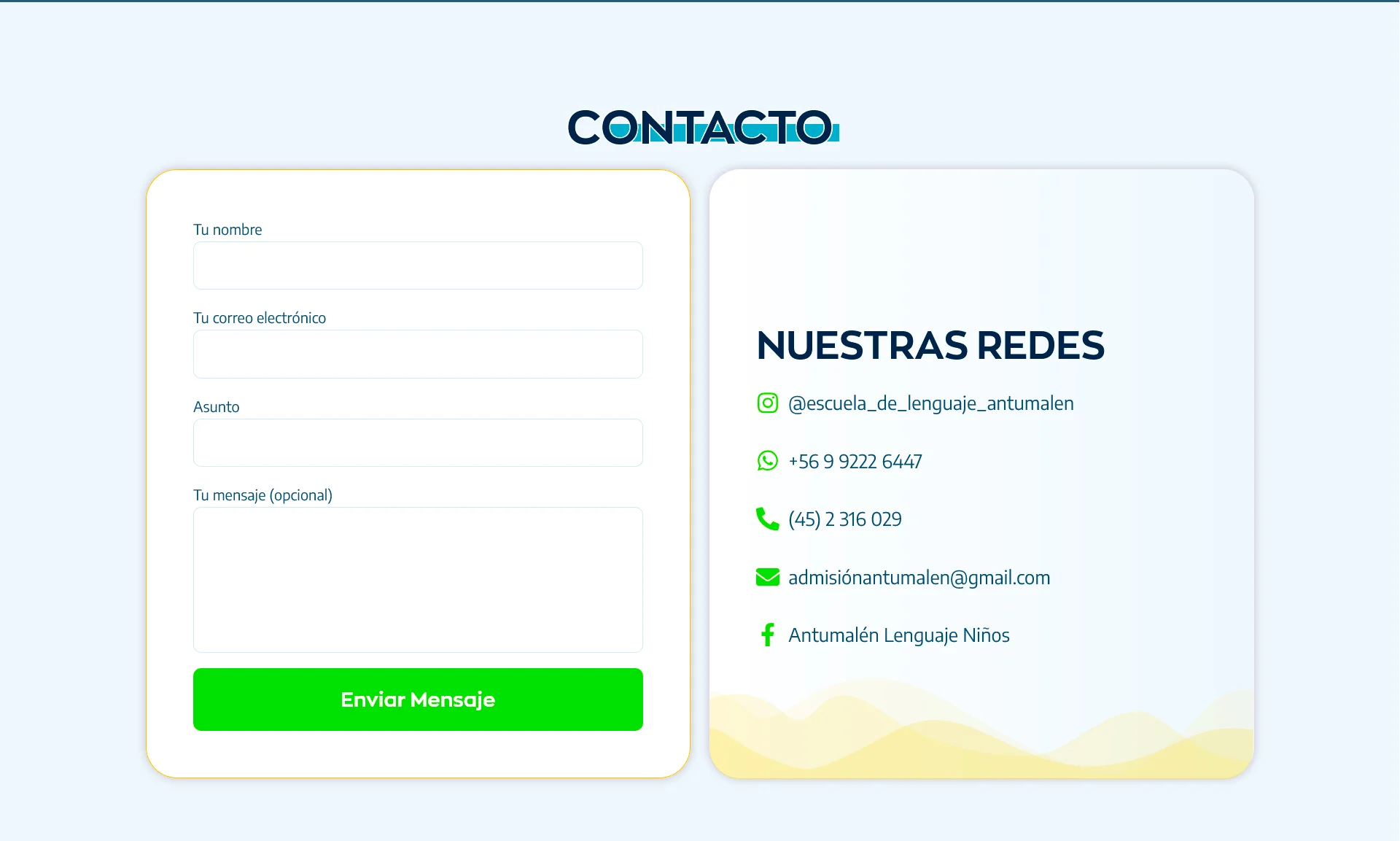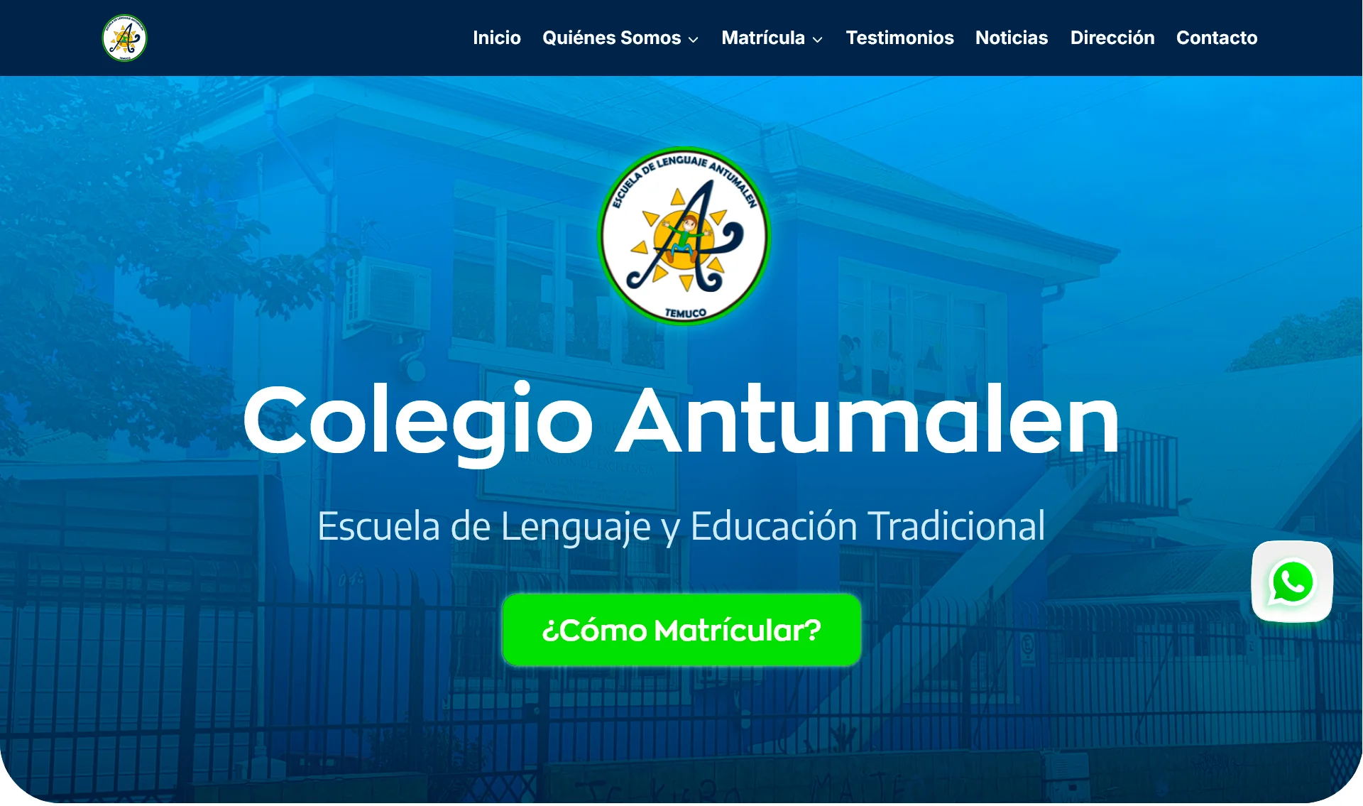 Sitio web para el Colegio de Lenguaje Antumalén, institución educativa dedicada al desarrollo integral del lenguaje infantil. El diseño prioriza la claridad y el acceso rápido a información académica, documentos institucionales y actividades escolares, reforzando su vínculo con la comunidad.