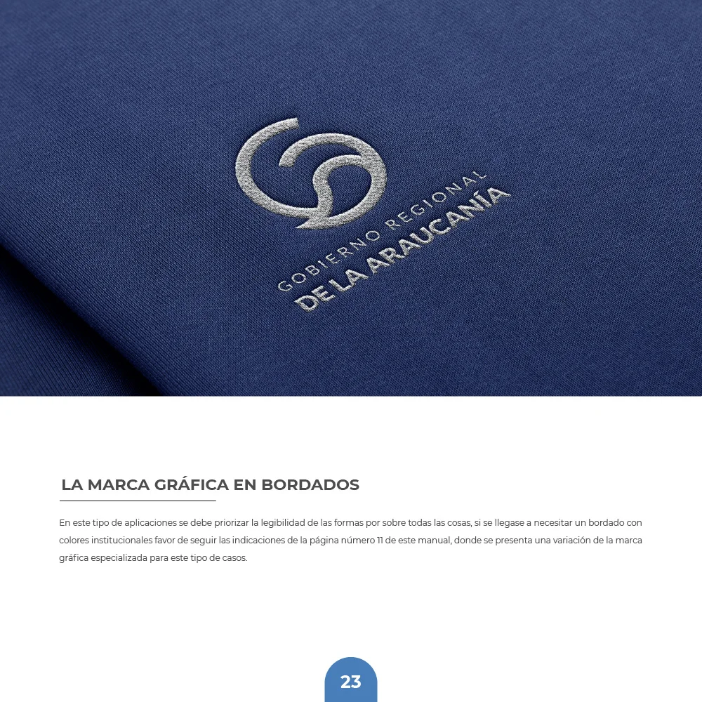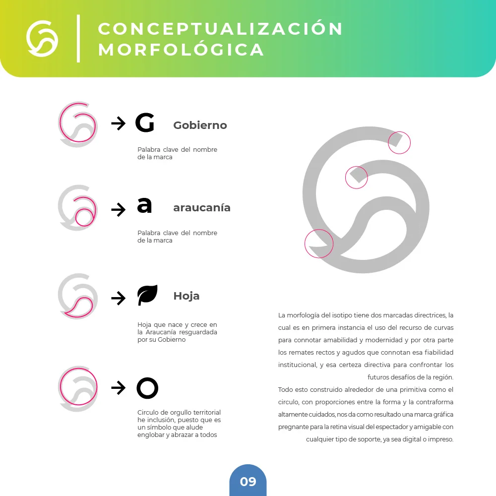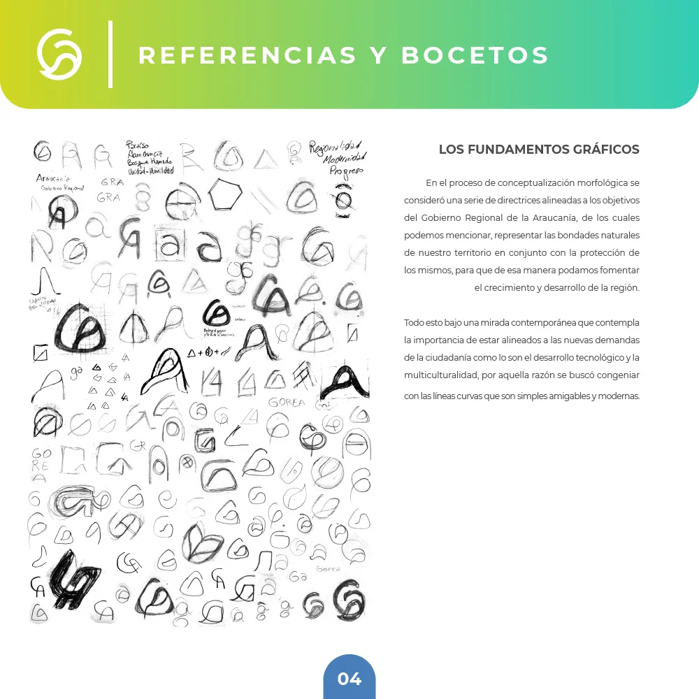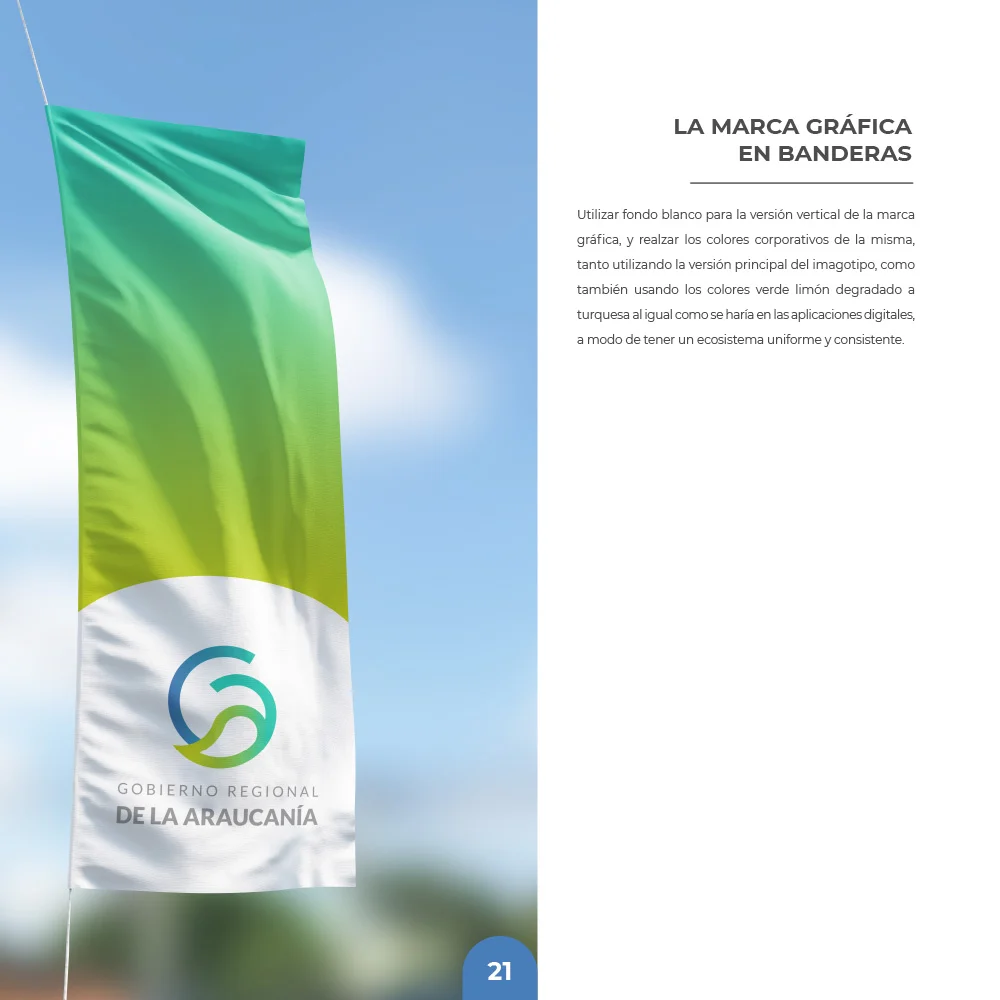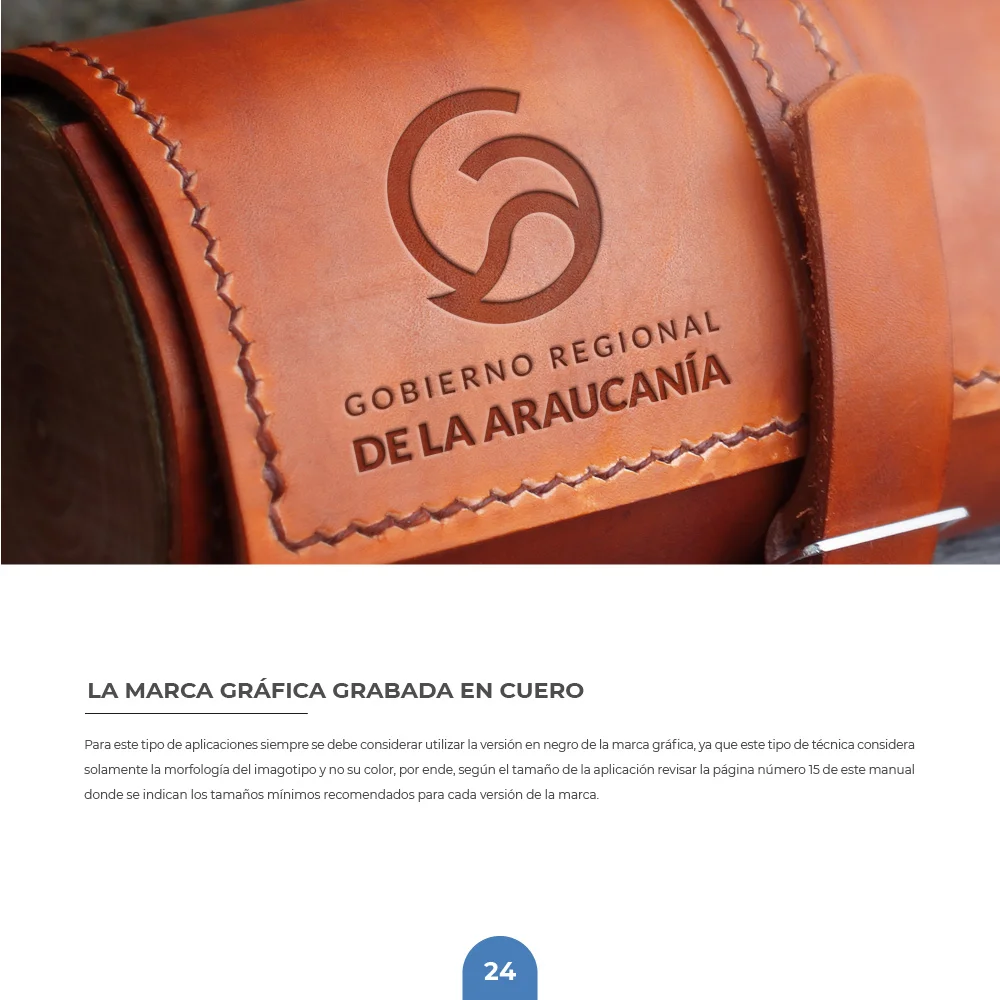 Para el Gobierno Regional de La Araucanía se desarrolló una identidad que sintetiza la esencia natural y el carácter institucional del territorio. El símbolo integra una hoja que representa las bondades naturales de la región, protegida por un círculo que simboliza inclusividad y orgullo territorial, reflejando los valores de protección, crecimiento y desarrollo regional.