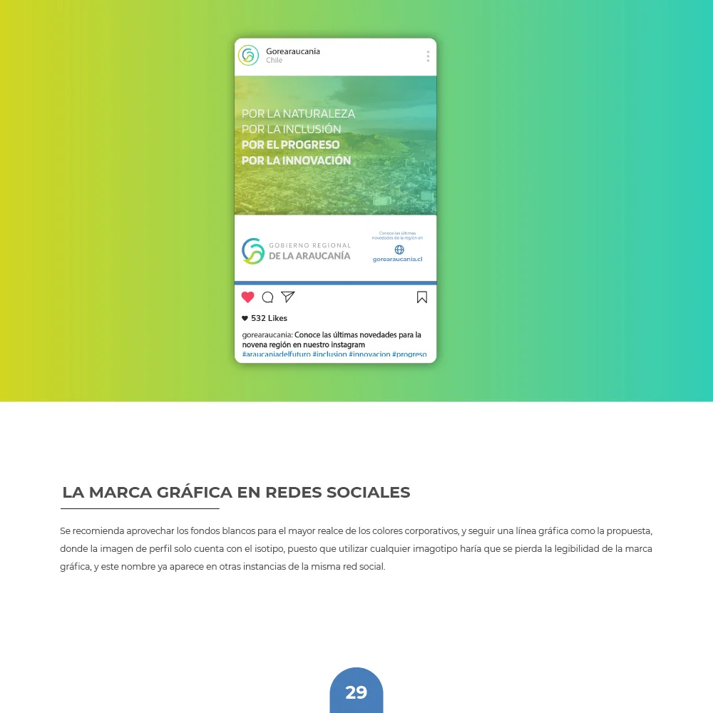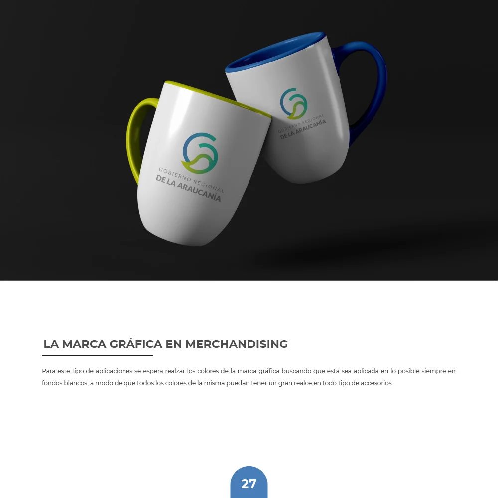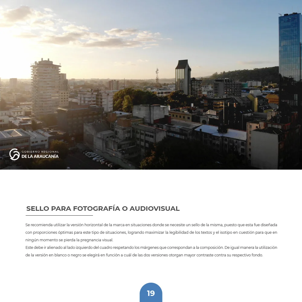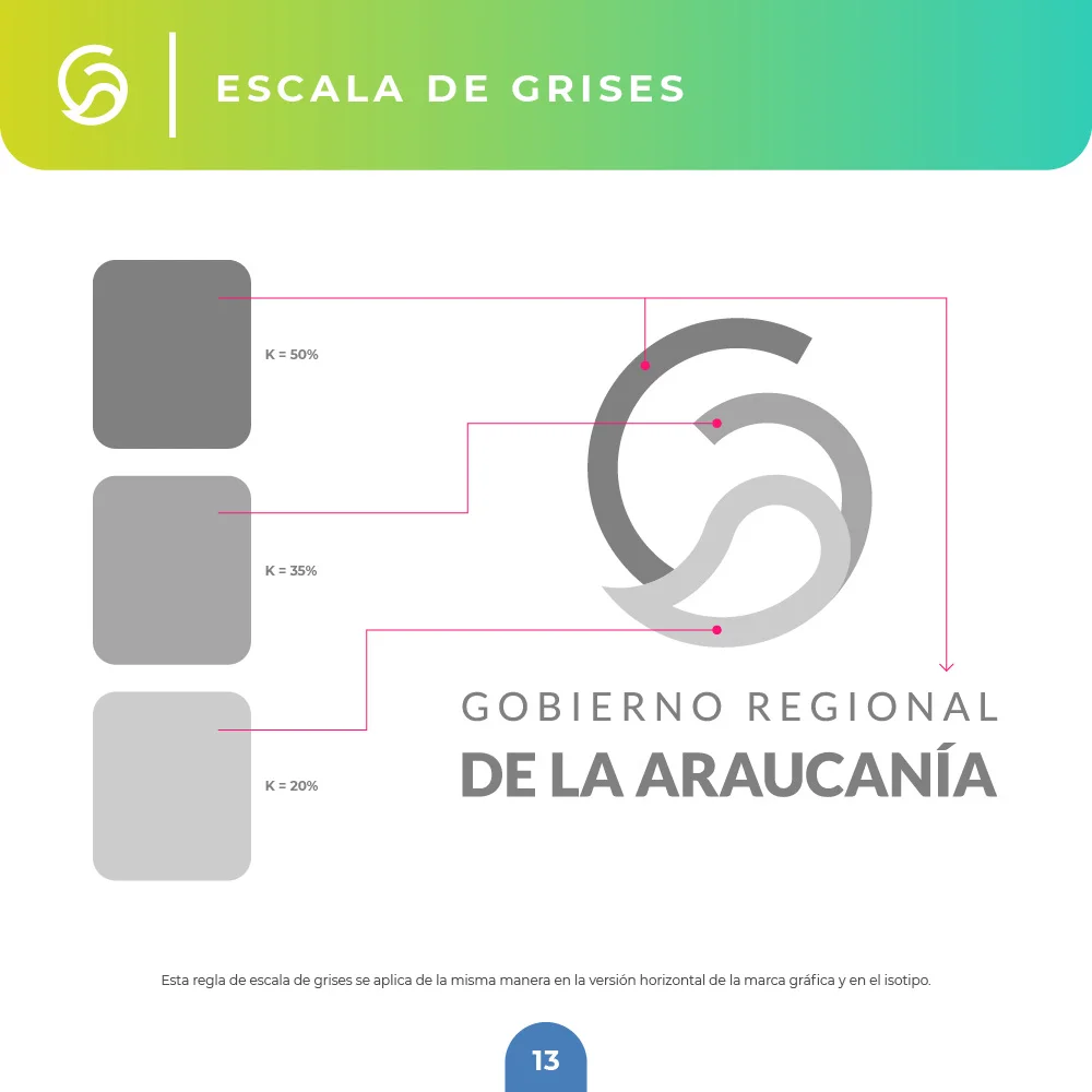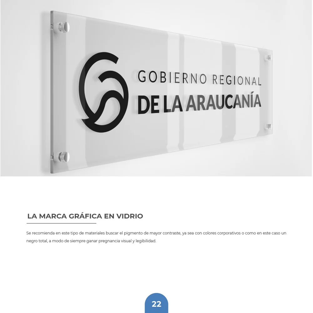Para el Gobierno Regional de La Araucanía se desarrolló una identidad que sintetiza la esencia natural y el carácter institucional del territorio. El símbolo integra una hoja que representa las bondades naturales de la región, protegida por un círculo que simboliza inclusividad y orgullo territorial, reflejando los valores de protección, crecimiento y desarrollo regional.