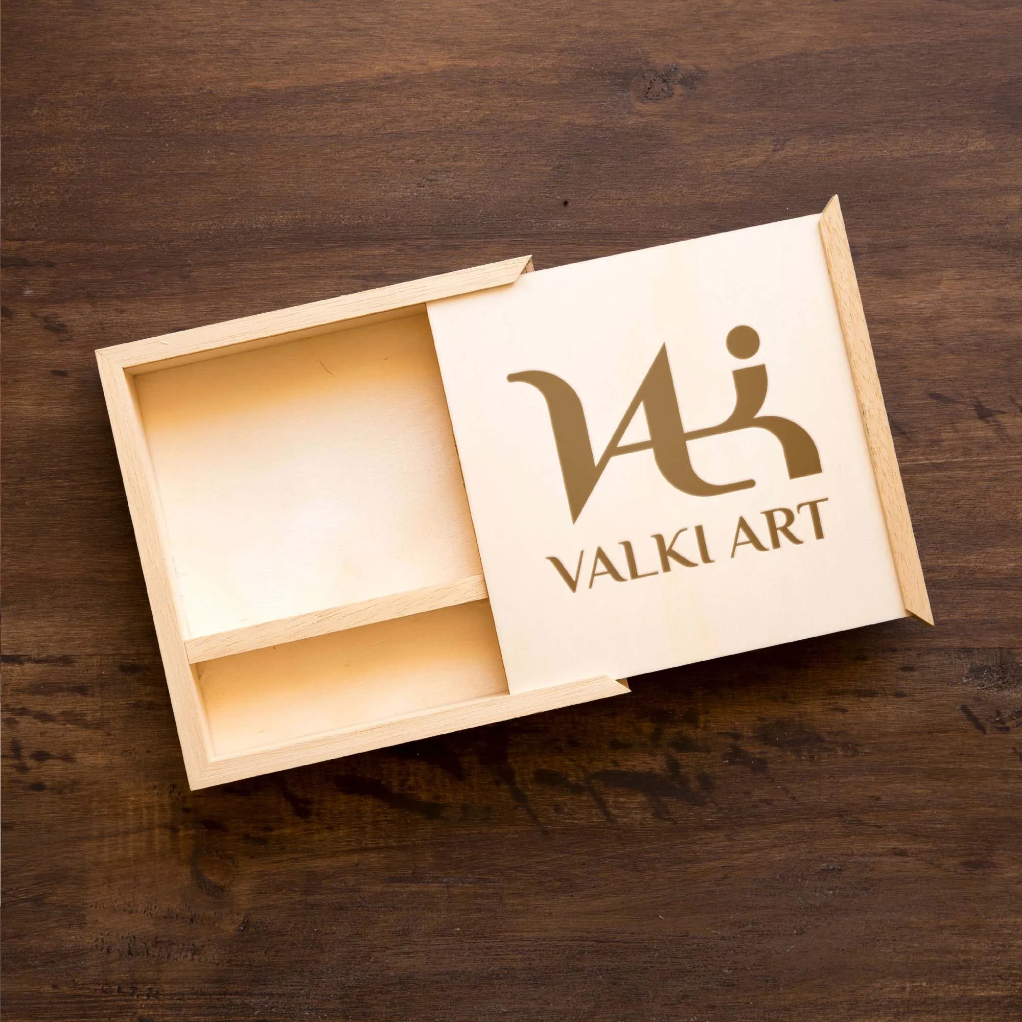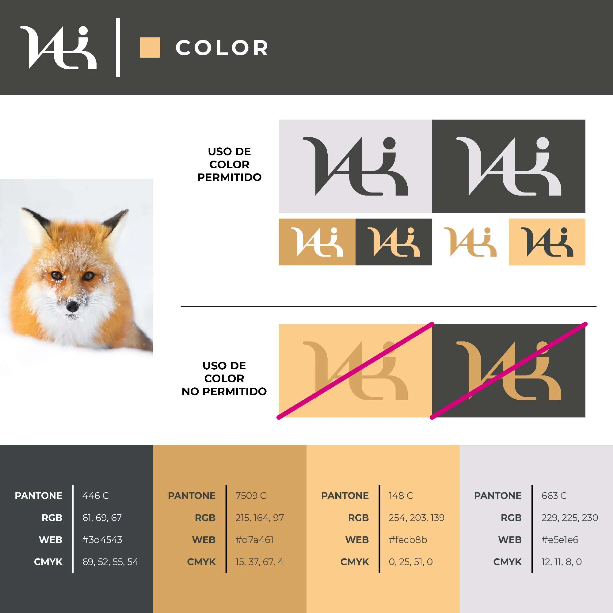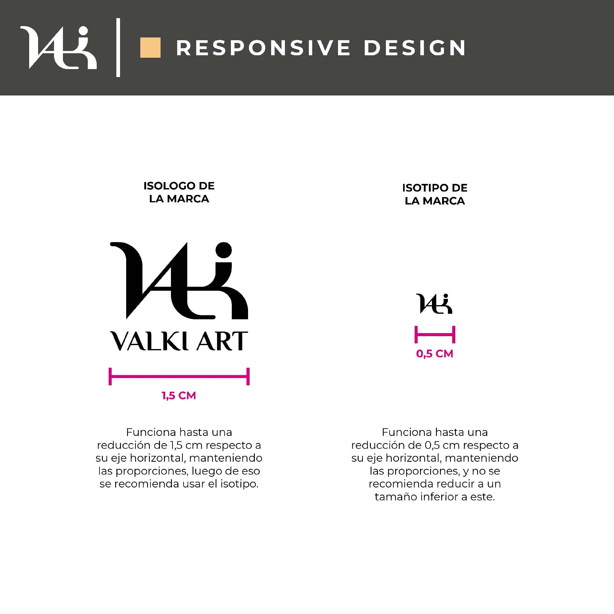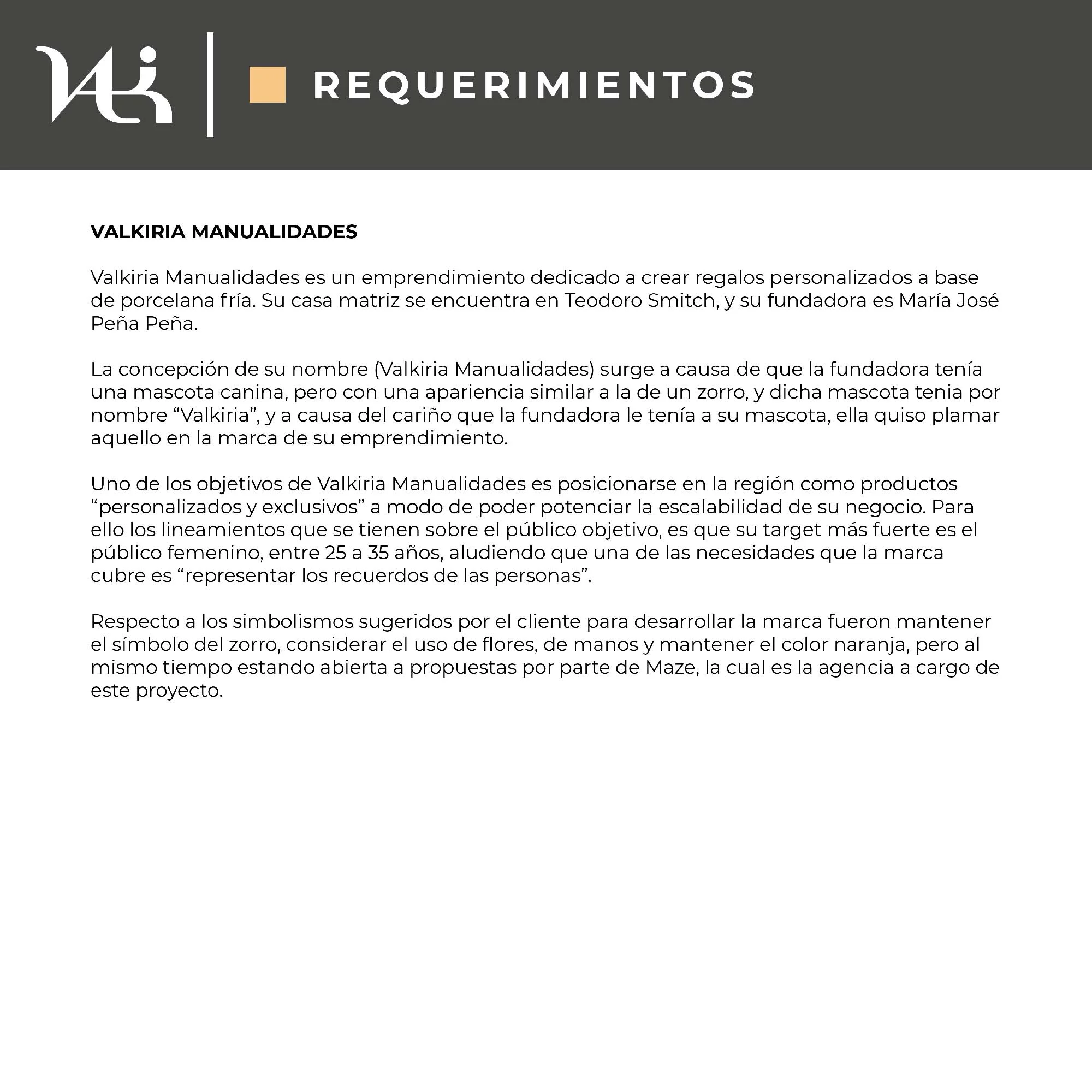 Marca para Valki Art que integra sutilmente la forma de un zorro en la letra "V". Refleja elegancia y sofisticación, posicionando la marca en el segmento premium de manualidades en porcelana fría.